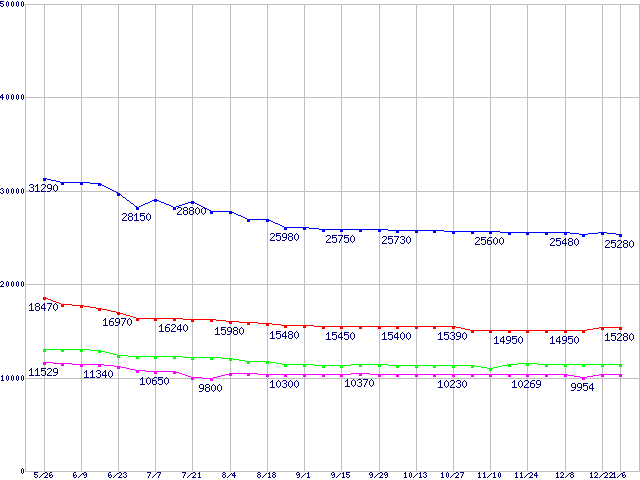| Barracuda 7200.8 (7200rpm,Ultra ATA/100,8MB,133GB/Platter)の最安値推移 | | | (2005年5月26日~2006年1月6日) |