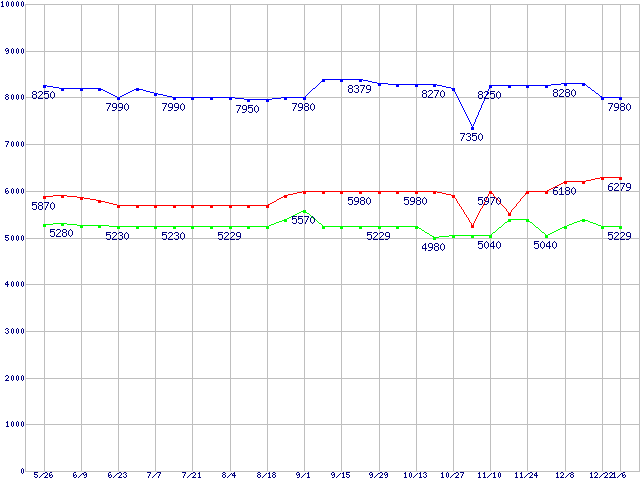 | Barracuda 7200.7 (7200rpm,Ultra ATA/100,2MB,80GB/Platter)の最安値推移 | | | (2005年5月26日~2006年1月6日) |