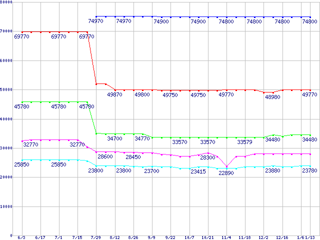 mPGA 479M・FSB 533MHzの最安値推移