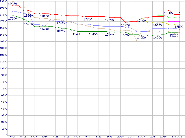 HDD主要製品(最安値1万5千円~2万円未満)の最安値推移