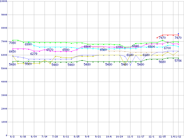 HDD 30GB~80GB未満の最安値推移