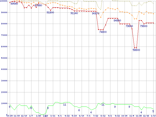 | Athlon 64 FX-55 (2.6GHz)の価格推移 | | | (2004年10月29日~2006年1月13日) |