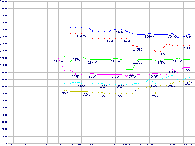 Socket 754 (PGA,FSB 800MHz)の最安値推移