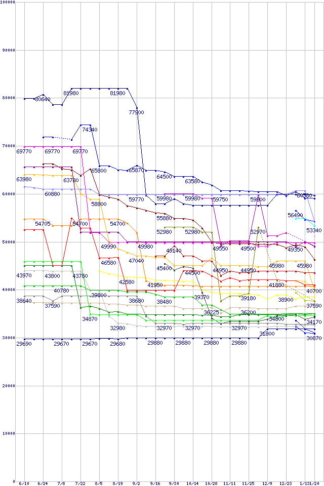 CPU主要製品(最安値3万円~6万円未満)の最安値推移