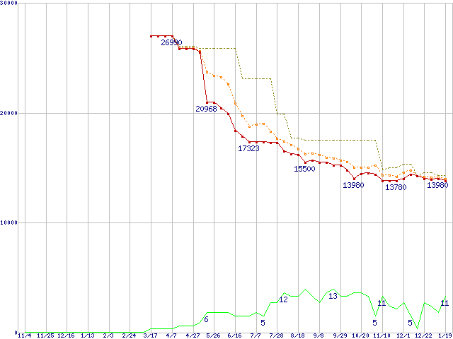 | WD3200JD (320GB)の価格推移 | | | (2004年11月4日~2006年1月19日) |