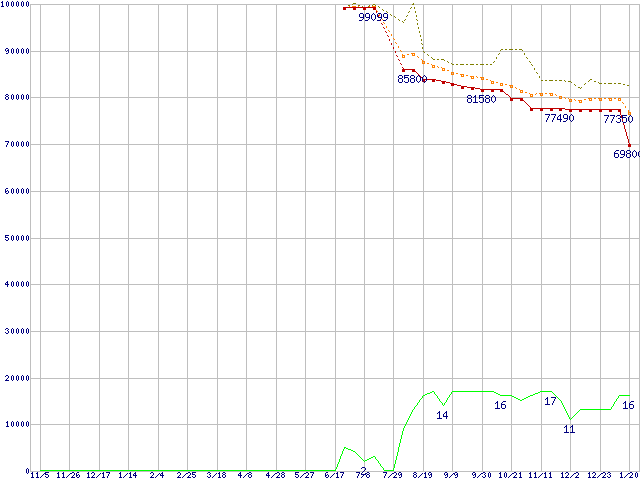 | Athlon 64 X2 4600+ (2.4GHz,L2 512KBx2)の価格推移 | | | (2004年11月5日~2006年1月20日) |