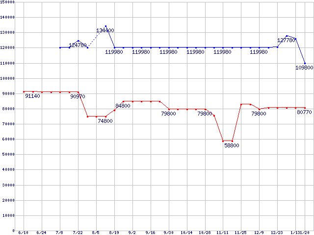 Socket 939 (FSB 1000MHz,L2 1MB)の最安値推移