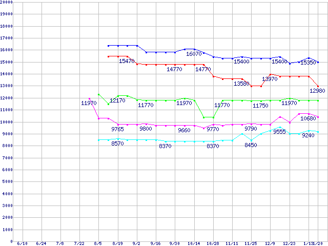 mPGA479M (FSB 400MHz,L2 1MB)の最安値推移