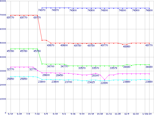LGA 775 (FSB 800MHz,L2 1MB×2,Dual Core,Hyper-Threading,EM64T対応)の最安値推移