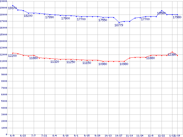 WD Raptor (10000rpm,Serial ATA/150,8MB)の最安値推移