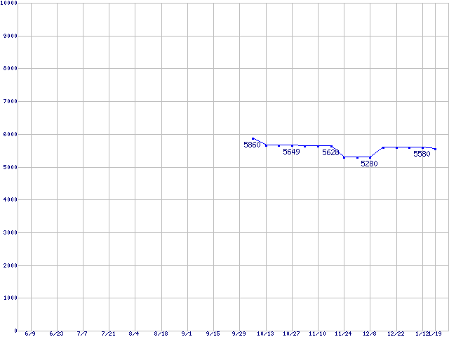 | DiamondMax Plus 8 (7200rpm,2MB,Ultra ATA/133)の最安値推移 | | | (2005年6月9日~2006年1月19日) |