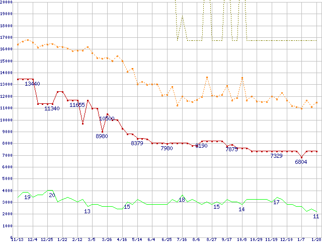 PC3200(DDR400) DDR SDRAM DIMM ECC対応 Registeredタイプの最安値推移