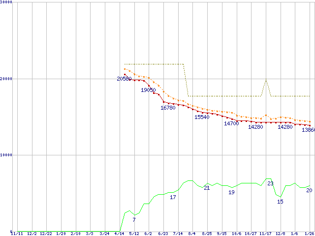 | 6L300S0 (300GB,16MB)の価格推移 | | | (2004年11月11日~2006年1月26日) |