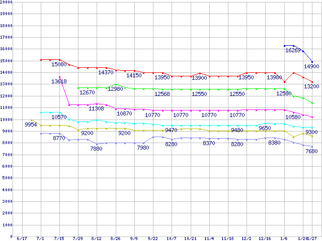 Socket 478 (FSB 533MHz,L2 256KB)の最安値推移