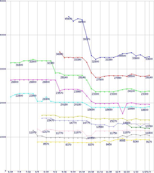 ※製品名をクリックすると個別のグラフを表示します ※点線部は販売店が確認できなかった、または調査データがないことを示します |