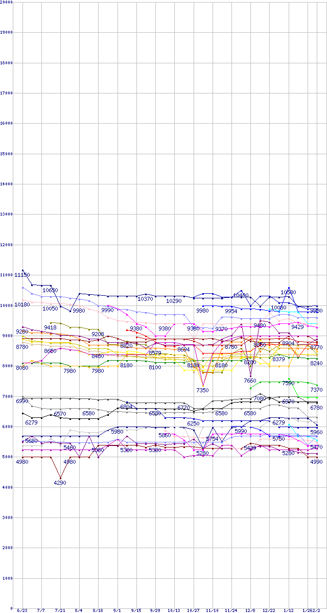 ※製品名をクリックすると個別のグラフを表示します ※点線部は販売店が確認できなかった、または調査データがないことを示します |