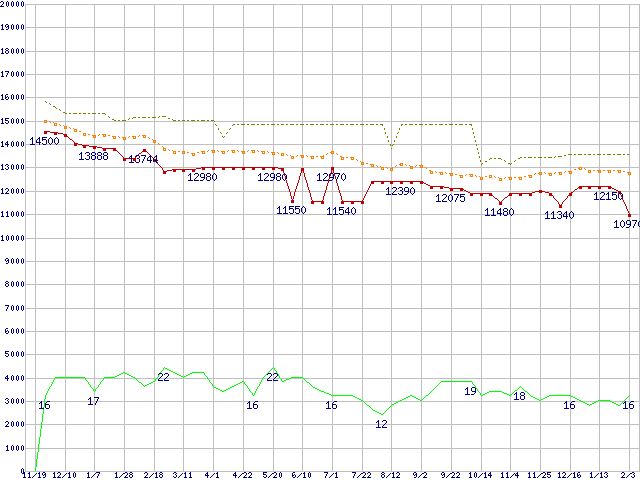 | Celeron D 345 (3.06GHz)の価格推移 | | | (2004年11月19日~2006年2月3日) |
