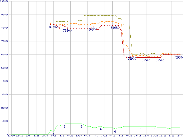 | Xeon 3.40GHz (L2 2MB)の価格推移 | | | (2004年11月19日~2006年2月3日) |