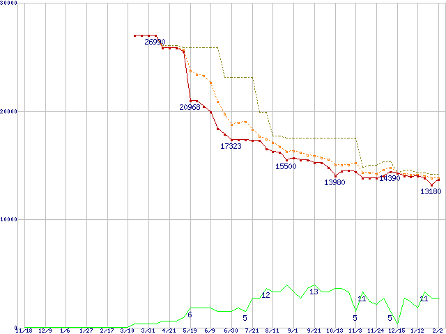 | WD3200JD (320GB)の価格推移 | | | (2004年11月18日~2006年2月2日) |