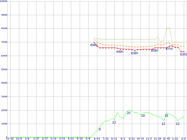 | 6L080P0 (80GB,8MB)の価格推移 | | | (2004年11月18日~2006年2月2日) |