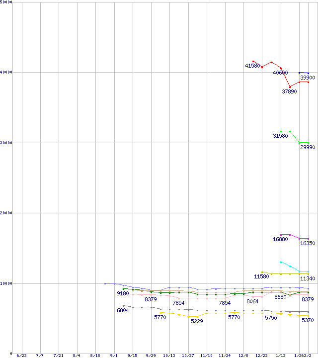 | Barracuda 7200.9 (7200rpm,Ultra ATA/100)の最安値推移 | | | (2005年6月23日~2006年2月2日) |