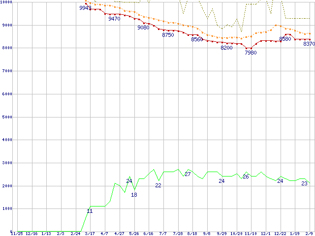 | HDT722516DLAT80 (160GB,8MB)の価格推移 | | | (2004年11月25日~2006年2月9日) |