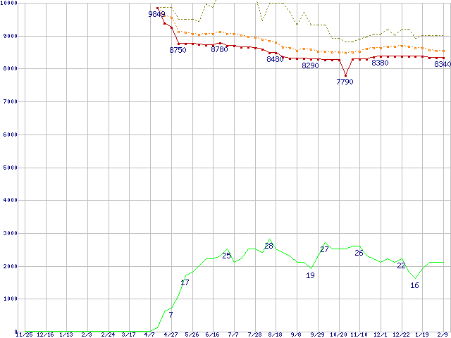 | 6L160P0 (160GB,8MB)の価格推移 | | | (2004年11月25日~2006年2月9日) |