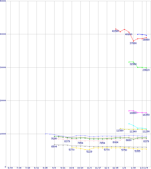 | Barracuda 7200.9 (7200rpm,Ultra ATA/100)の最安値推移 | | | (2005年6月30日~2006年2月9日) |