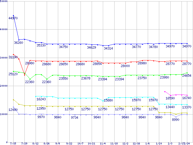 mPGA 479M・FSB 533MHzの最安値推移