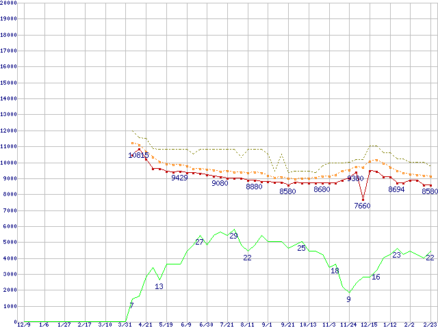 | HDT722516DLA380 (160GB,8MB)の価格推移 | | | (2004年12月9日~2006年2月23日) |