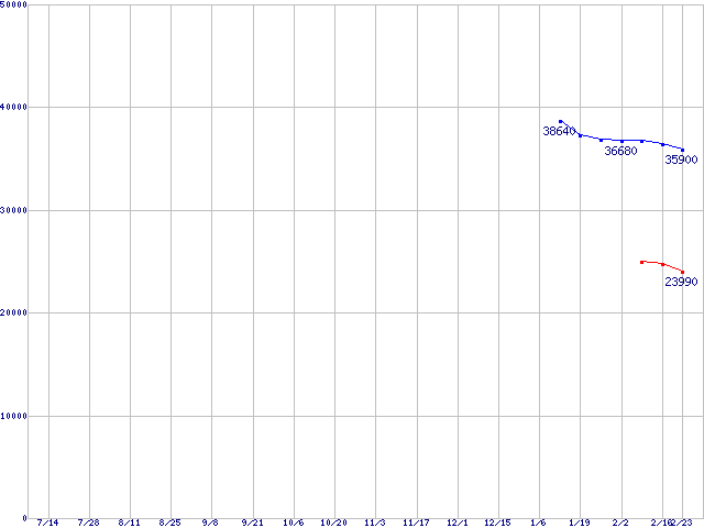 | DiamondMax 11 (7200rpm,16MB,Serial ATA II,3Gbps)の最安値推移 | | | (2005年7月14日~2006年2月23日) |