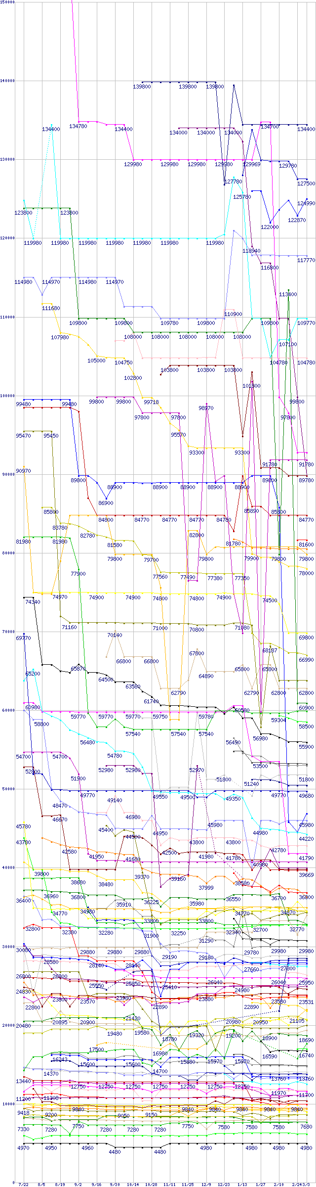 | CPU主要製品の最安値推移 | | | (2005年7月22日~2006年3月3日) |