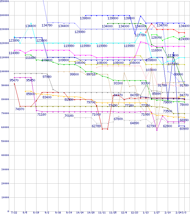 ※点線部は販売店が確認できなかった、または調査データがないことを示します
