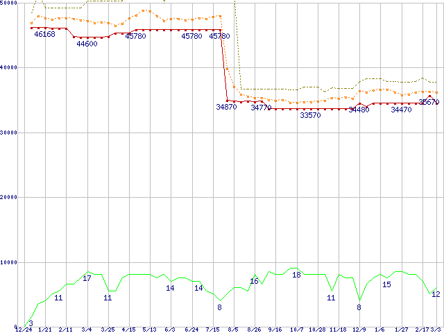| Pentium M 760 (2GHz)の価格推移 | | | (2004年12月24日~2006年3月3日) |