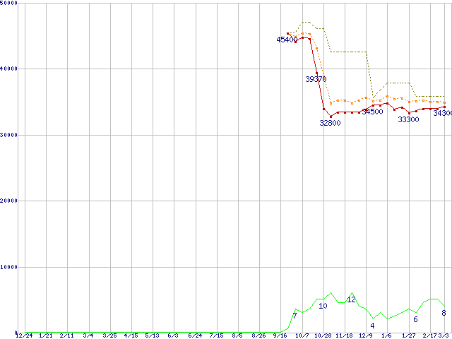 | Turion 64 MT-40 (2.2GHz,1MB) バルクの価格推移 | | | (2004年12月24日~2006年3月3日) |