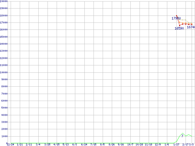 | Celeron M 390 (1.7GHz)の価格推移 | | | (2004年12月24日~2006年3月3日) |