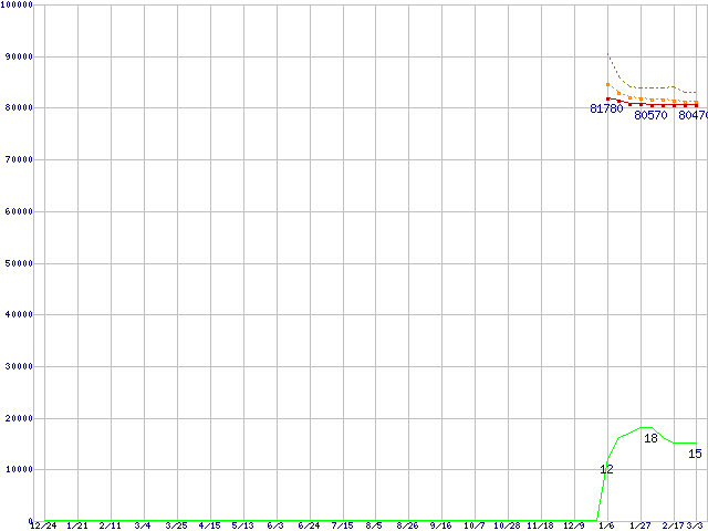 | Pentium D 950 (3.4GHz)の価格推移 | | | (2004年12月24日~2006年3月3日) |