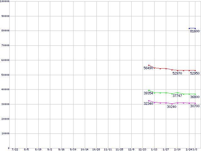 mPGA479M (FSB 400MHz,L2 1MB)の最安値推移