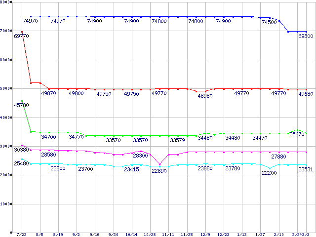 mPGA479M (FSB 400MHz,L2 2MB)の最安値推移