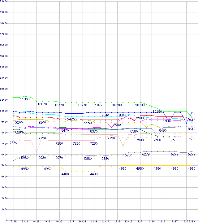 CPU主要製品(最安値1万円~2万円未満)の最安値推移