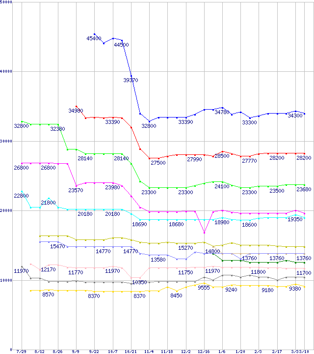 | Socket 754・FSB 800MHzの最安値推移 | | | (2005年7月29日~2006年3月10日) |