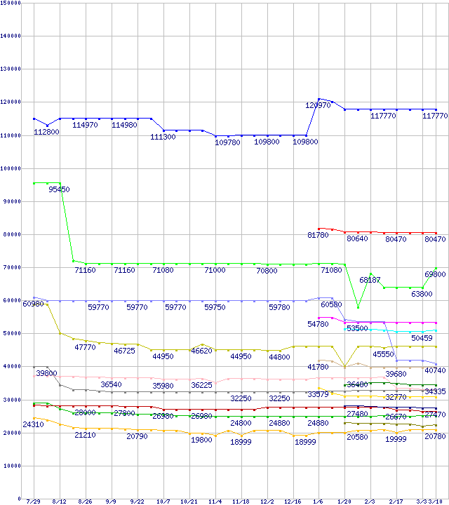 LGA 775・FSB 800MHzの最安値推移
