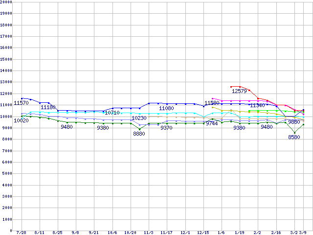 ※点線部は販売店が確認できなかった、または調査データがないことを示します