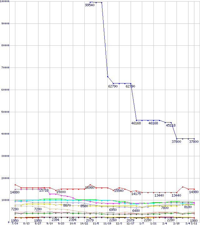 PC2-4200*(DDR2-533) DDR2 SDRAM DIMMの最安値推移