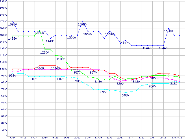 メモリ主要製品の最安値推移