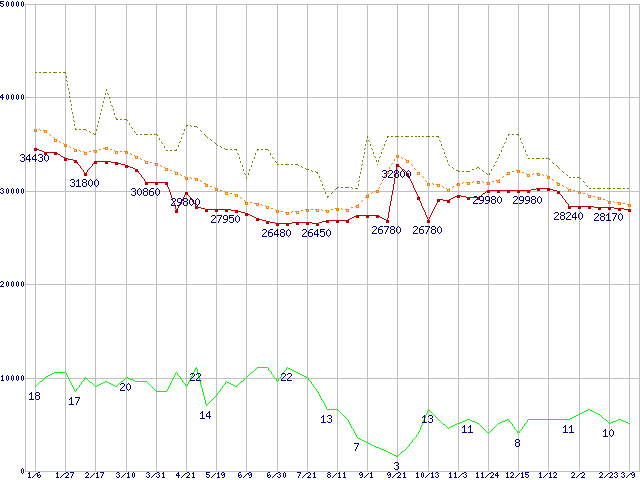| HDS724040KLSA80 (400GB,8MB)の価格推移 | | | (2005年1月6日~2006年3月9日) |