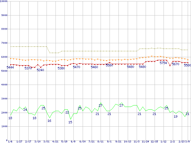 | HDS728080PLAT20 (80GB,2MB)の価格推移 | | | (2005年1月6日~2006年3月9日) |