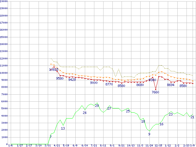 | HDT722516DLA380 (160GB,8MB)の価格推移 | | | (2005年1月6日~2006年3月9日) |