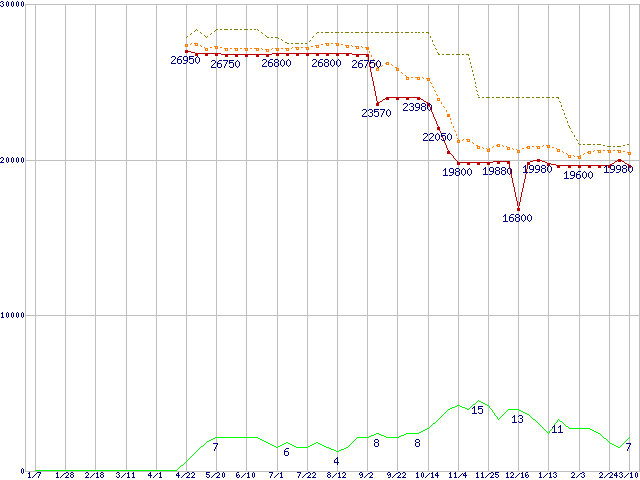 | Turion 64 MT-32 (1.8GHz,512KB) バルクの価格推移 | | | (2005年1月7日~2006年3月10日) |