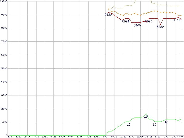| ST3160212A (160GB,2MB)の価格推移 | | | (2005年1月6日~2006年3月9日) |